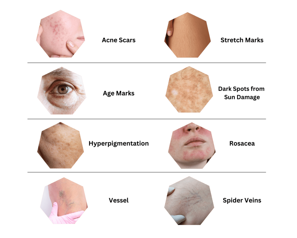 pigmentation, visible vessels, and uneven tone while stimulating collagen production for overall